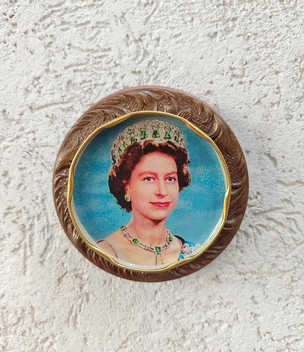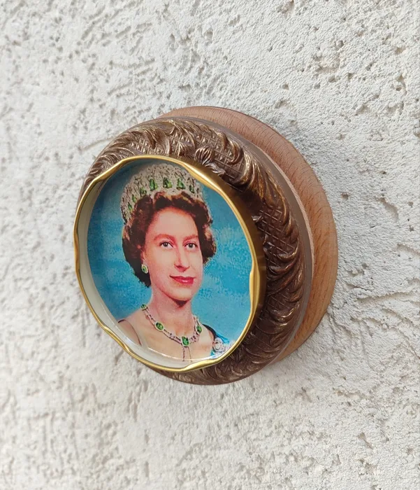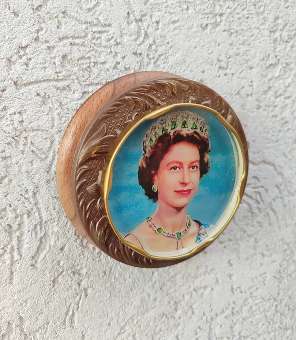 בתוך המכסה תמונה של המלכה
