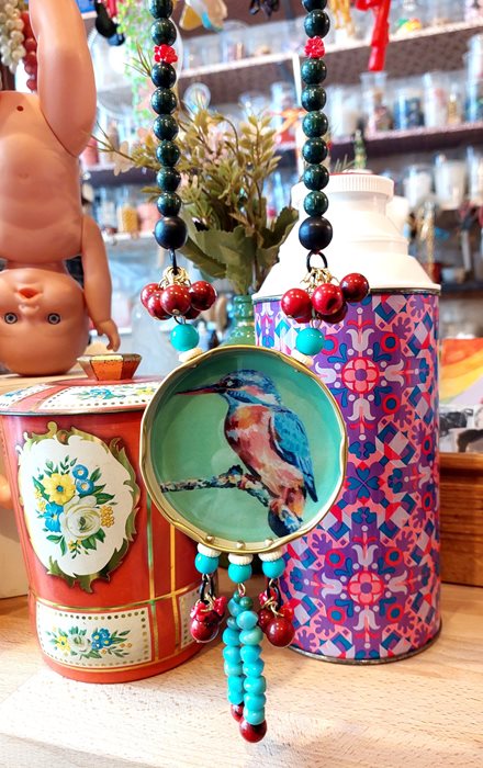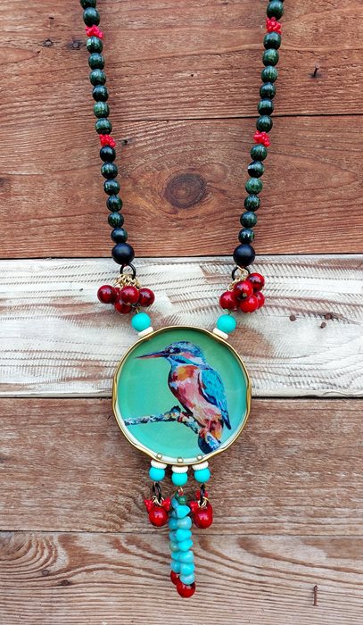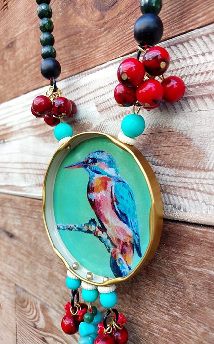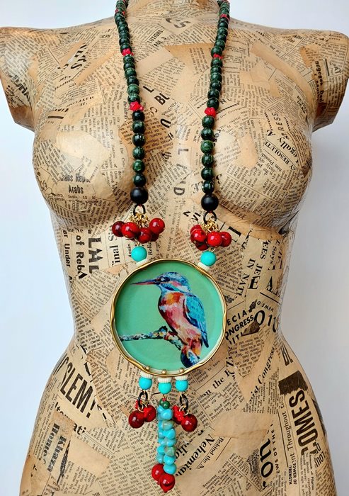 עם איור של ציפור בשילוב חרוזי פלסטיק