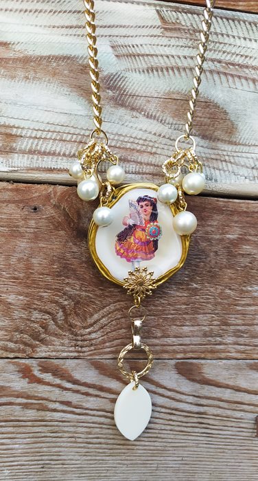 תכשיט עם מוטיב של שימוש חוזר, במרכז התליון תמונה מספר ויקטוריאני