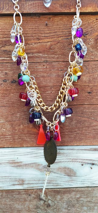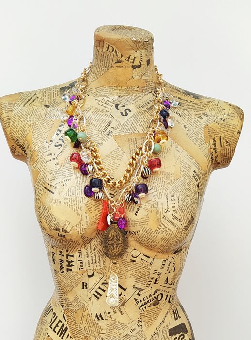 בשילוב חרוזי עץ, פלסטיק, זכוכית ופרספקס