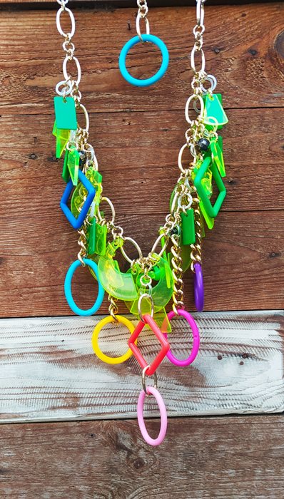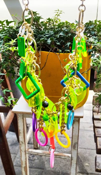 בסיס חוליות אלומניום בשילוב פרספקס, וחרוזי פלסטיק