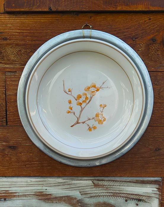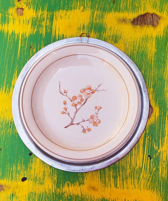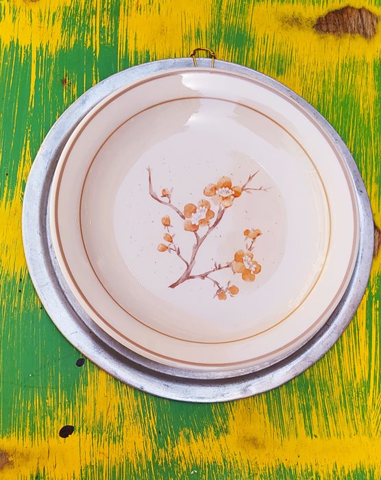 בשילוב צלחת פורצלן וינטג' בעיטור פרחים
