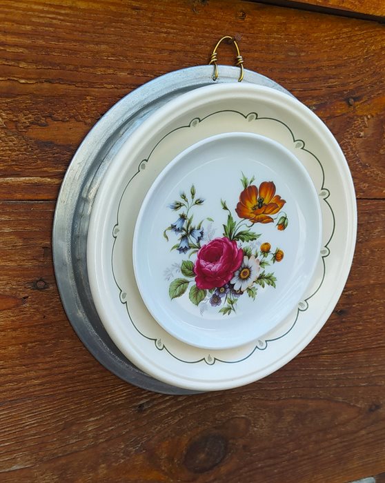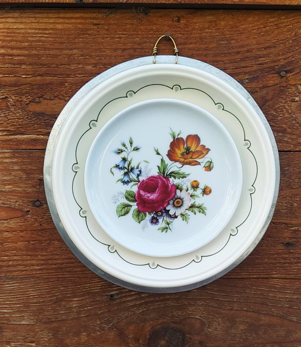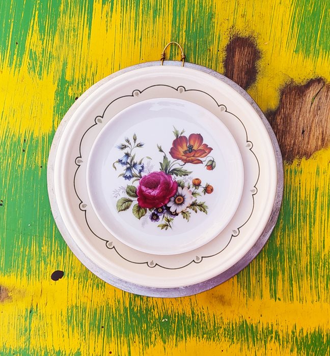 בשילוב שתי צלחות פורצלן וינטג' בעיטור פרחים