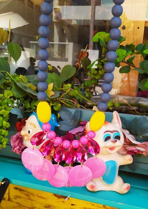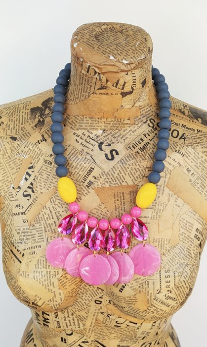חרוזי עץ בשילוב חרוזי פלסטיק וחלקי פלסטיק וינטג'