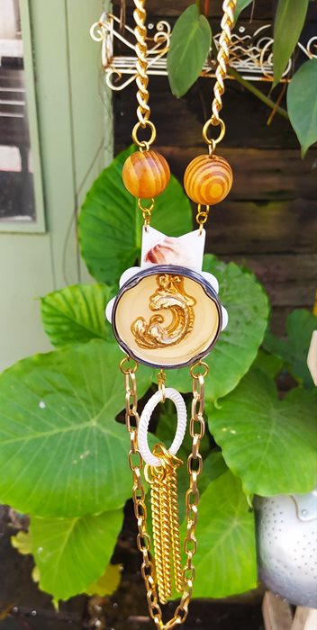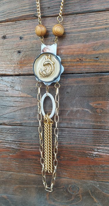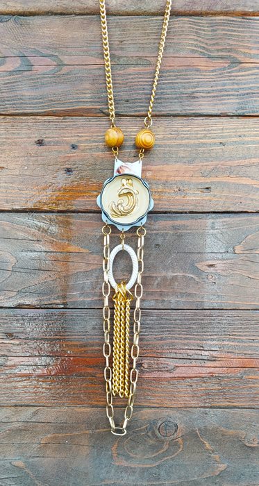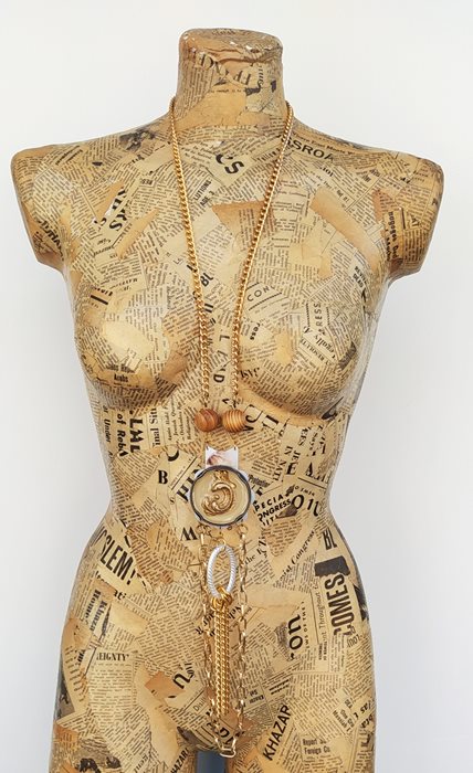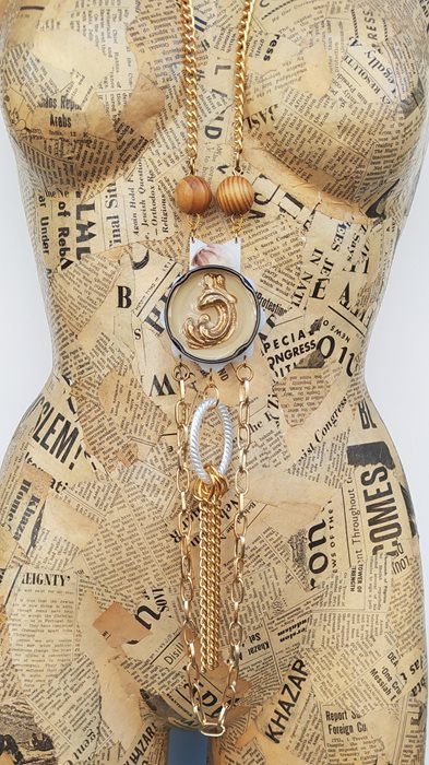 אלומניום בשילוב חרוזי עץ ופלסטיק וינטג'