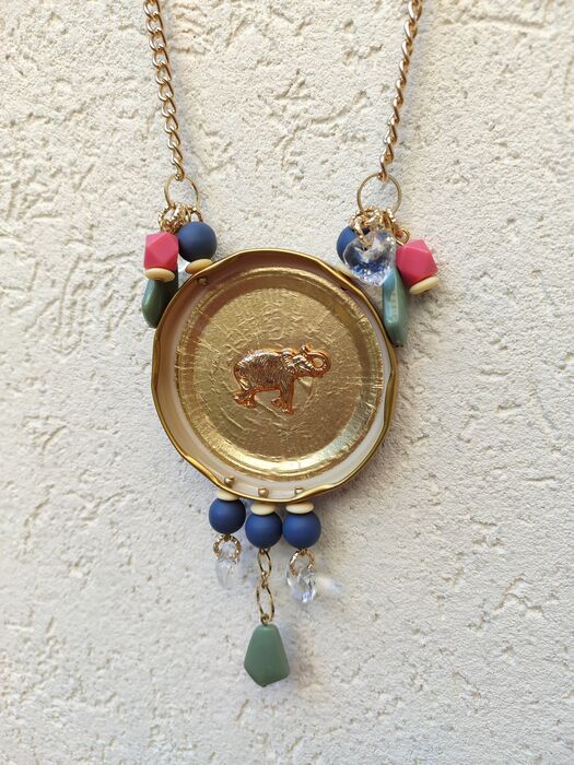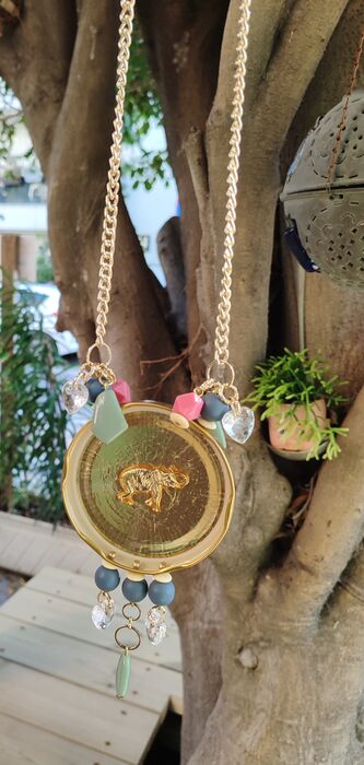 שרשרת אלומניום בשילוב חרוזי עץ ופלסטיק