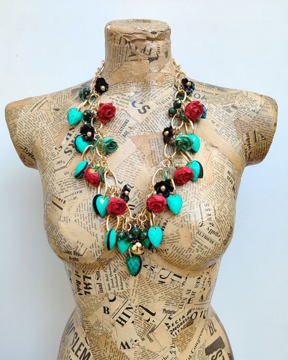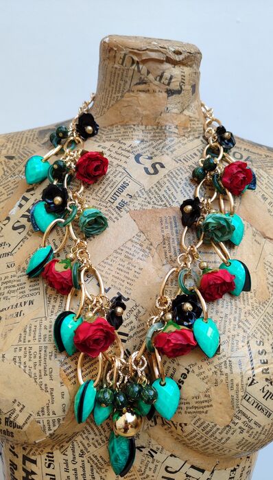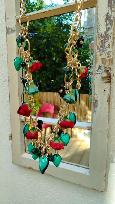 בסיס אלומניום בשילוב חלקי פלסטיק ופרחים סינטטים