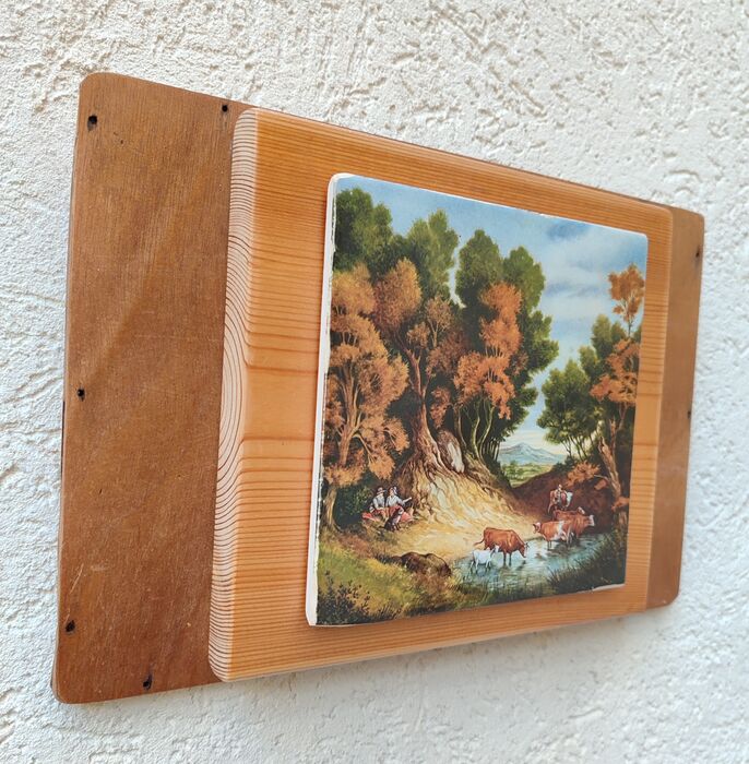 בסיס עץ ממוחזר בשילוב אריח קרמיקה מאויר