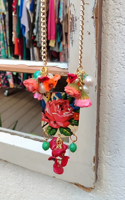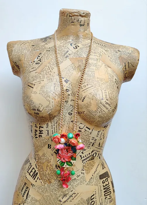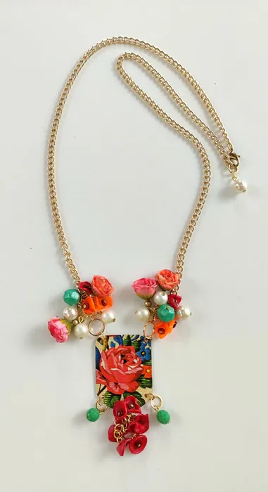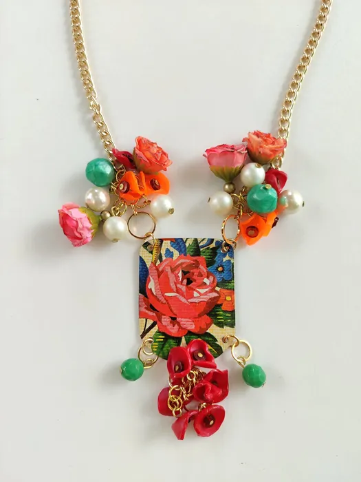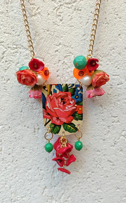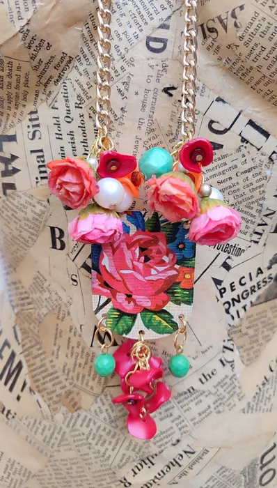 בשילוב חרוזי פלסטיק, פרחים סינטטים ופרחים