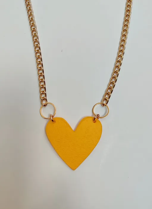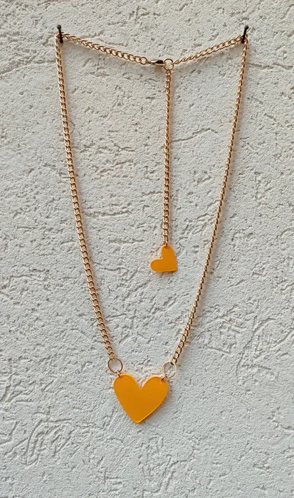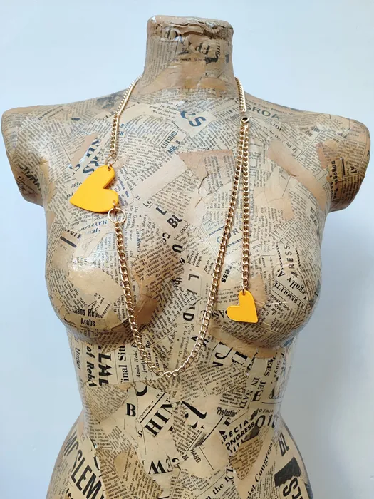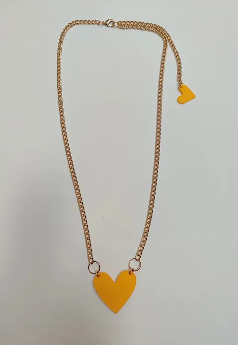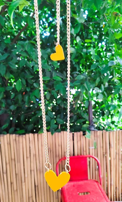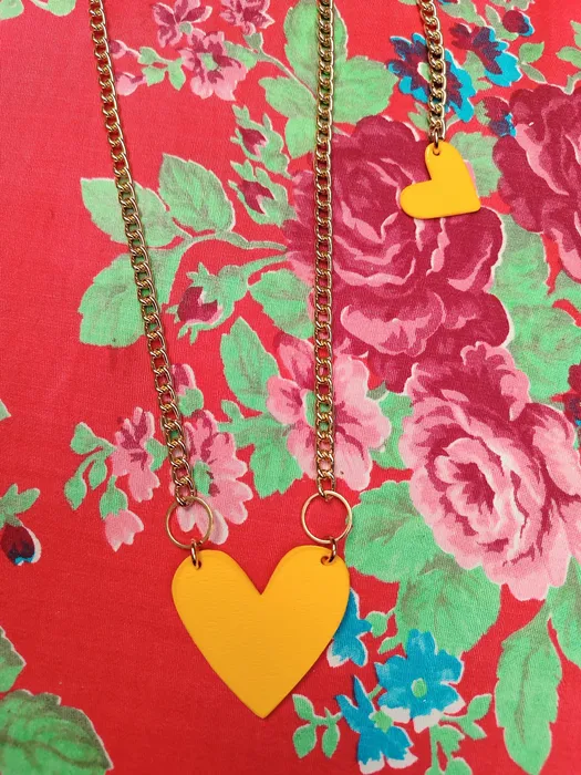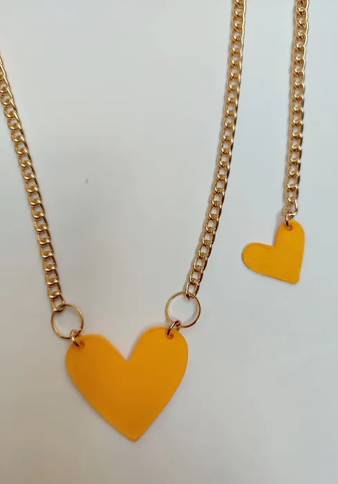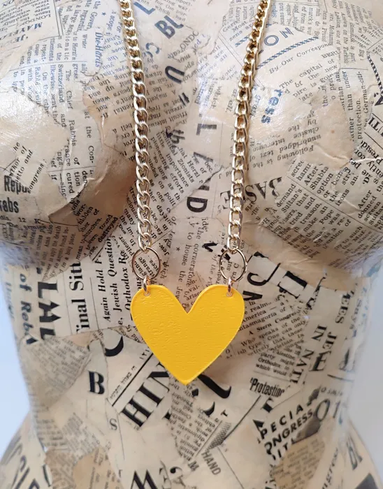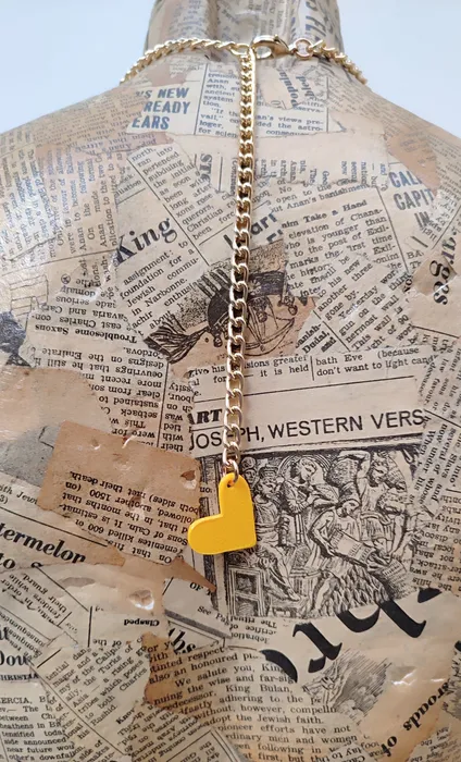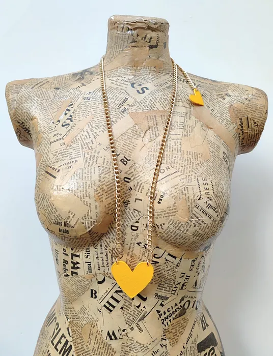 התליון עשוי מפלסטיק ממוחזר וצורת הלב נוצרה בעבודת יד
