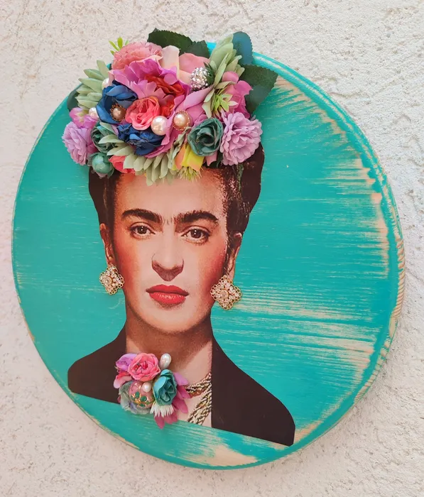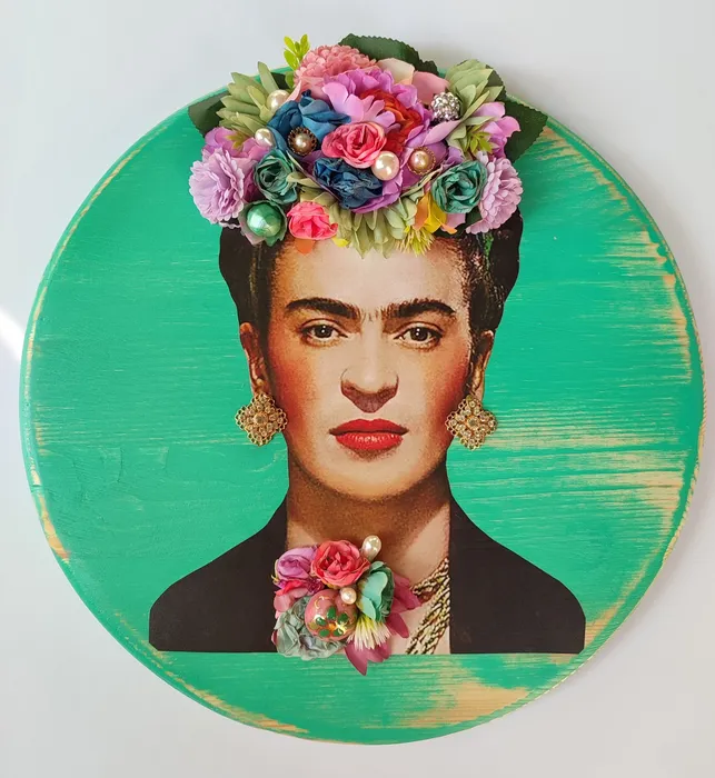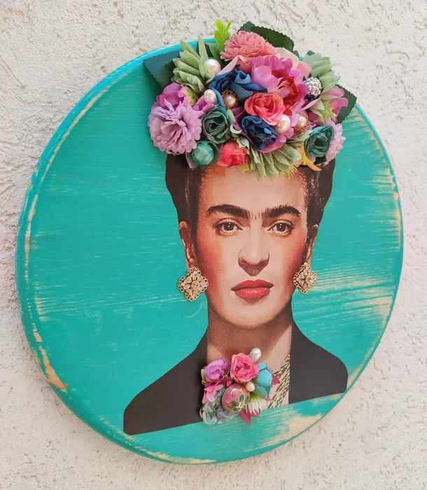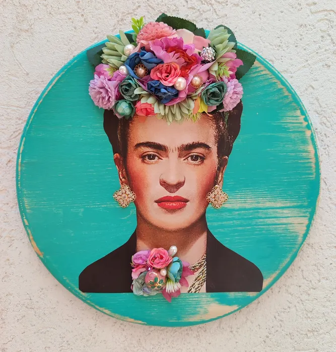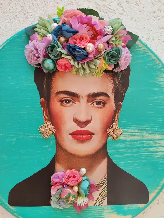 בסיס עץ בשילוב פרחים סינטטים, חלקי מתכת, אבנים מנצנצות,