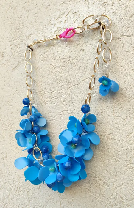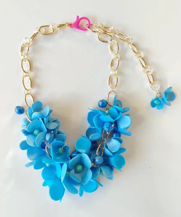 אלומניום בשילוב חרוזי פלסטיק ופרחים מפלסטיק ממוחזר