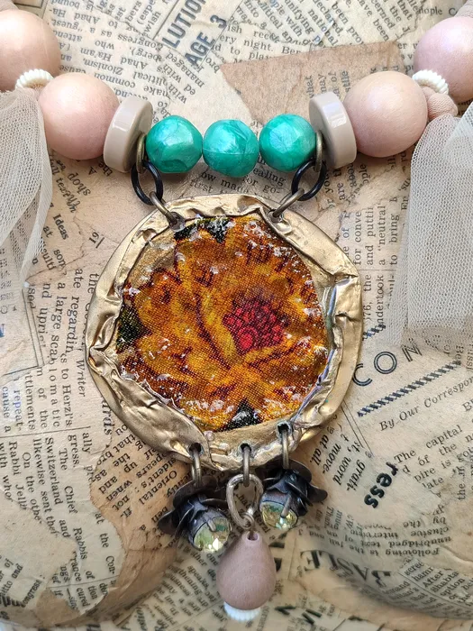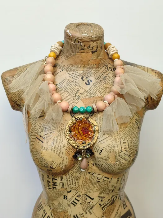 חרוזי עץ ופלסטיק בשילוב אלומניום וטקסטיל