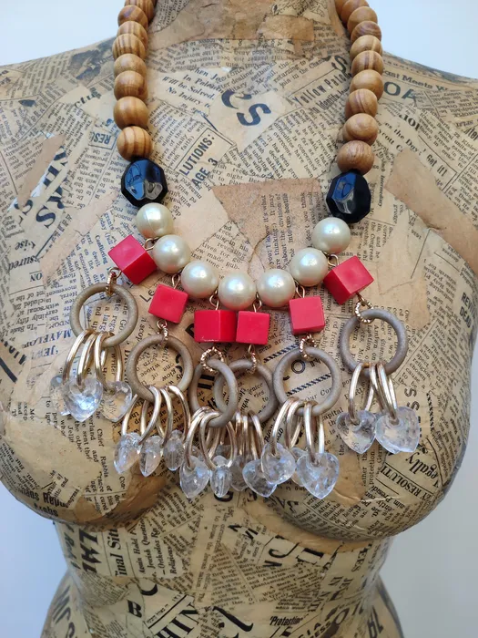חרוזי עץ ופלסטיק בשילוב אלומניום