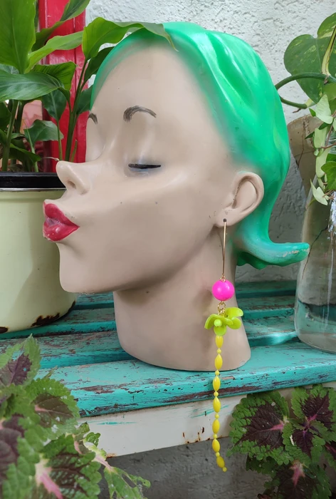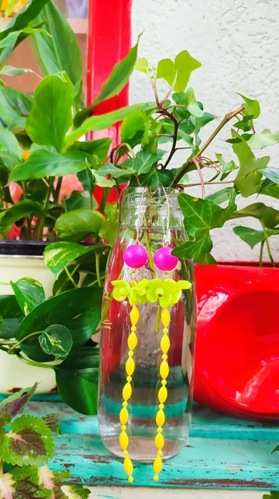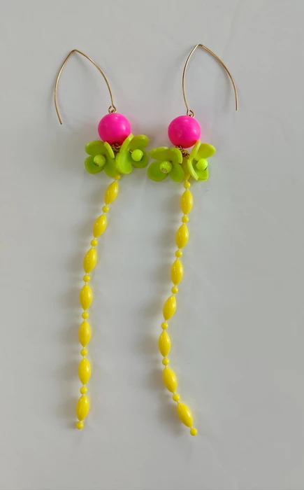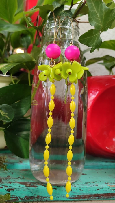 בשילוב חרוזי פלסטיק ופרחים מפלסטיק ממוחזר