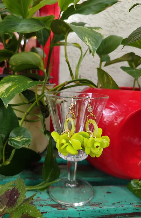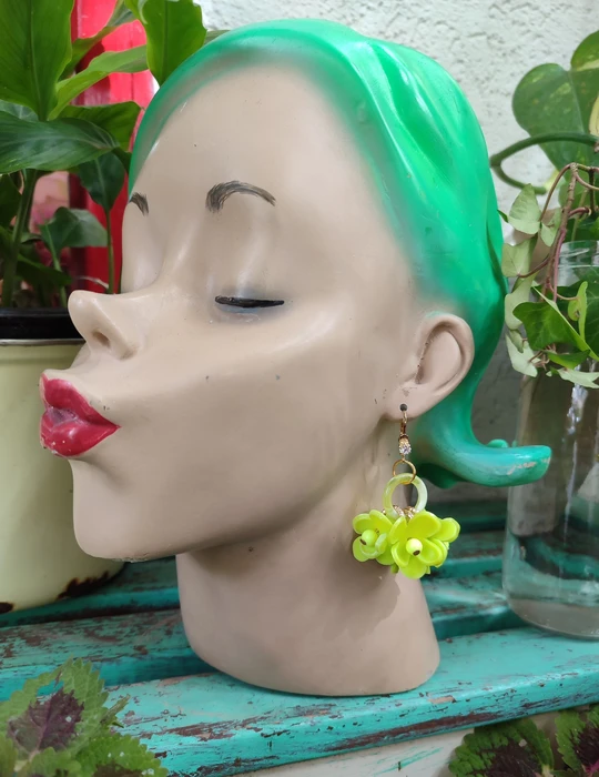 בשילוב חרוזי פלסטיק ופרחים מפלסטיק ממוחזר