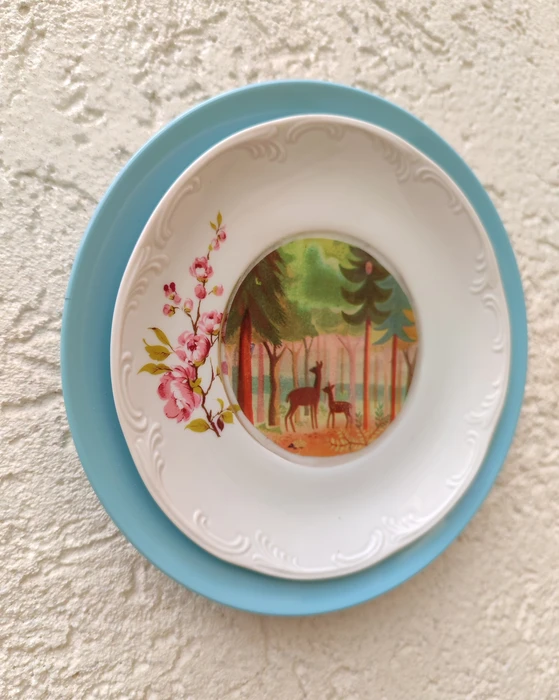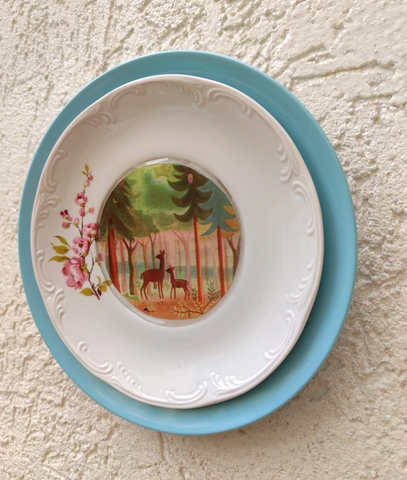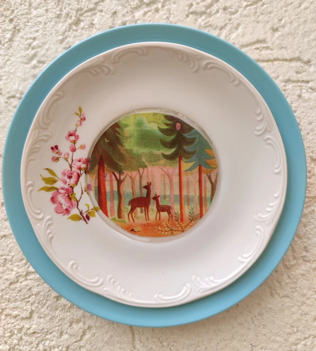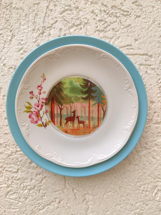בסיס צלחת מלמין בשילוב צלחת פורצלן וינטג'