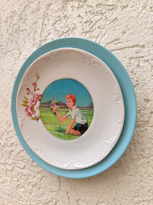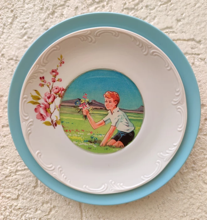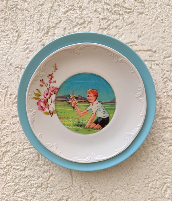 בסיס צלחת מלמין בשילוב צלחת פורצלן וינטג'