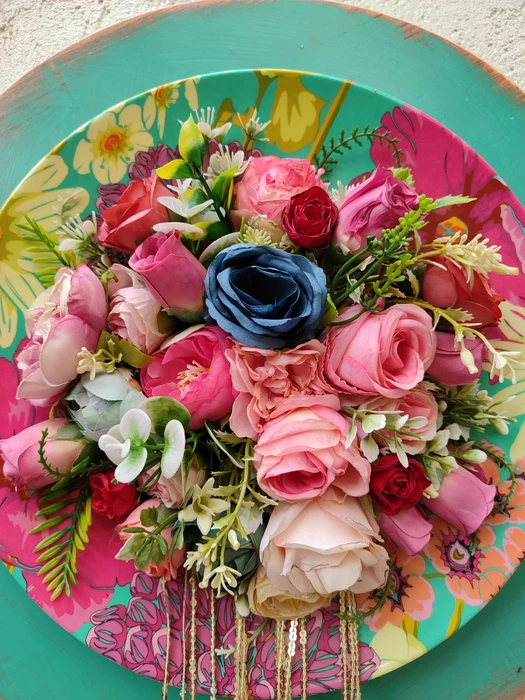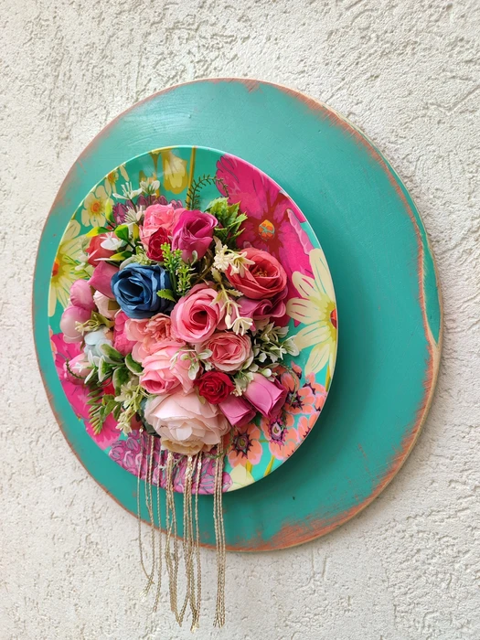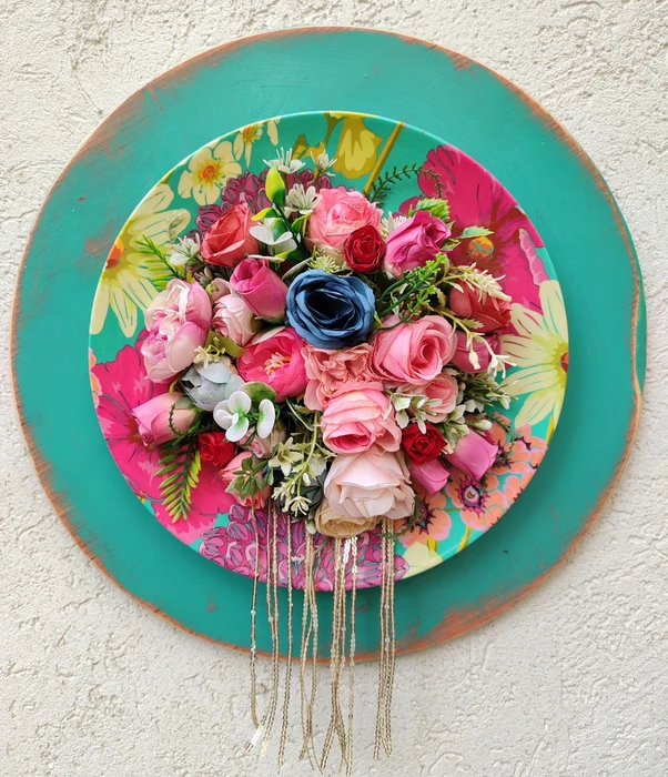 בסיס עץ בשילוב צלחת מלמין וינטג'